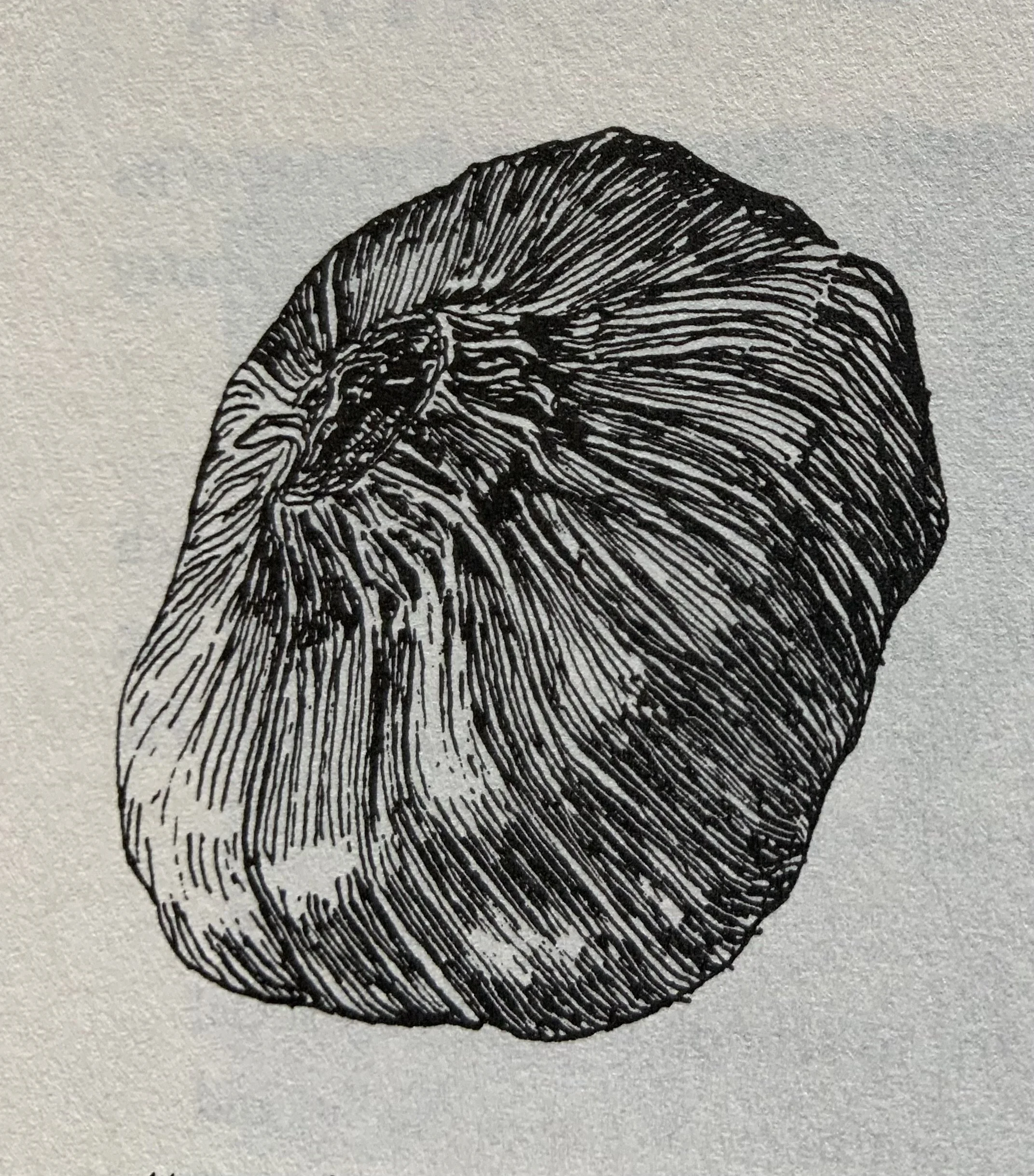 He had been taught to draw using major arm muscles. He had been taught that he wasn’t dependent upon fingertips. Fingertips are nice to have, but the “holder,” the thumb, and the swivel skill of thumb, wrist, elbow, and shoulder make the art. Proof? Here’s McLean’s pen and ink drawing of a garlic made with his right hand, his drawing hand minus four fingers.